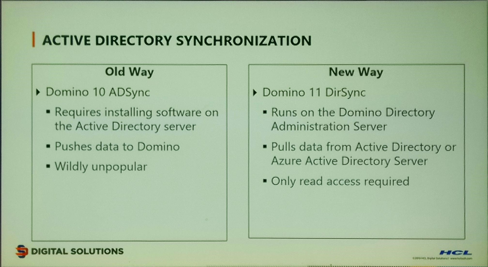 With version 11 we will have a possibility to implement “Two tiered DAOS”. We may also get Active Directory and Domino Directory Synchronization as well as “HTTP Authentication via ID Vault”.